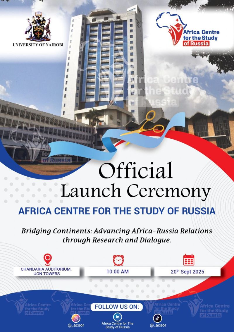 We are pleased to announce the Official Launch of the Africa Centre for the Study of Russia (ACSOR). Under the theme “Bridging Continents: Advancing Africa–Russia Relations through Research and Dialogue,” the Centre seeks to strengthen scholarly research, strategic policy conversations, and diplomatic engagement between Africa and Russia.